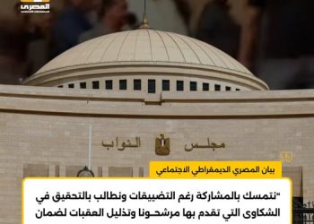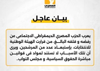 يعرب الحزب المصري الديمقراطى الاجتماعى عن رفضه و قلقه البالغ ، من قرارت الهيئة الوطنية للانتخابات ، بإستبعاد... .....
